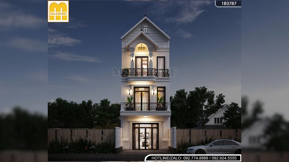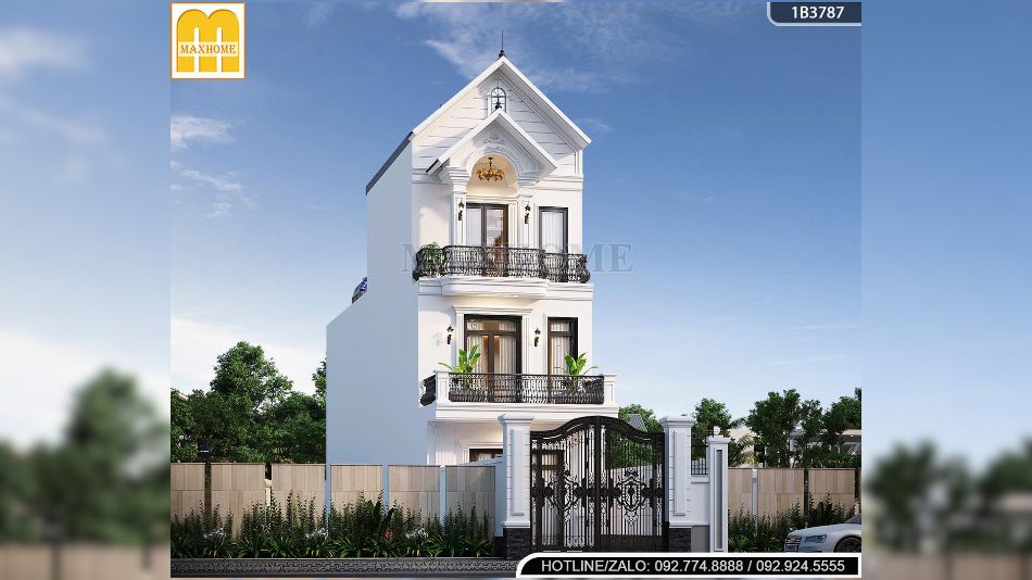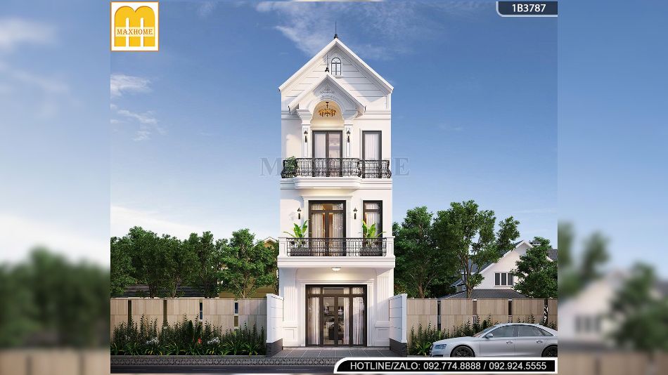 Mẫu nhà phố mái Thái tân cổ điển hiện lên nổi bật như một điểm nhấn tại khu vực, kết tinh tinh hoa kiến trúc kinh điển và hơi thở hiện đại. Công trình vừa tối ưu công năng trên quỹ đất hạn hẹp vừa tỏa sáng với diện mạo lộng lẫy, sang trọng, khẳng định sự chuyên nghiệp của đội ngũ kiến trúc sư Maxhome.