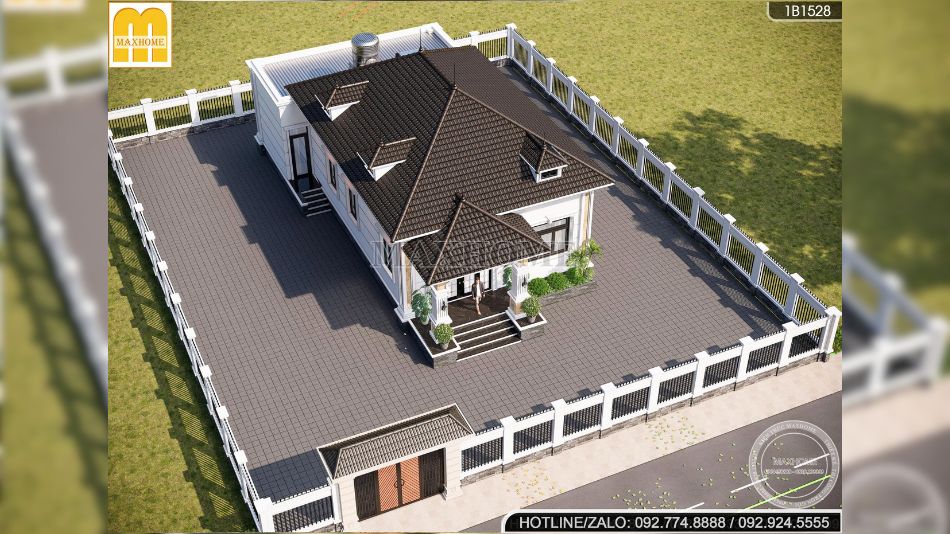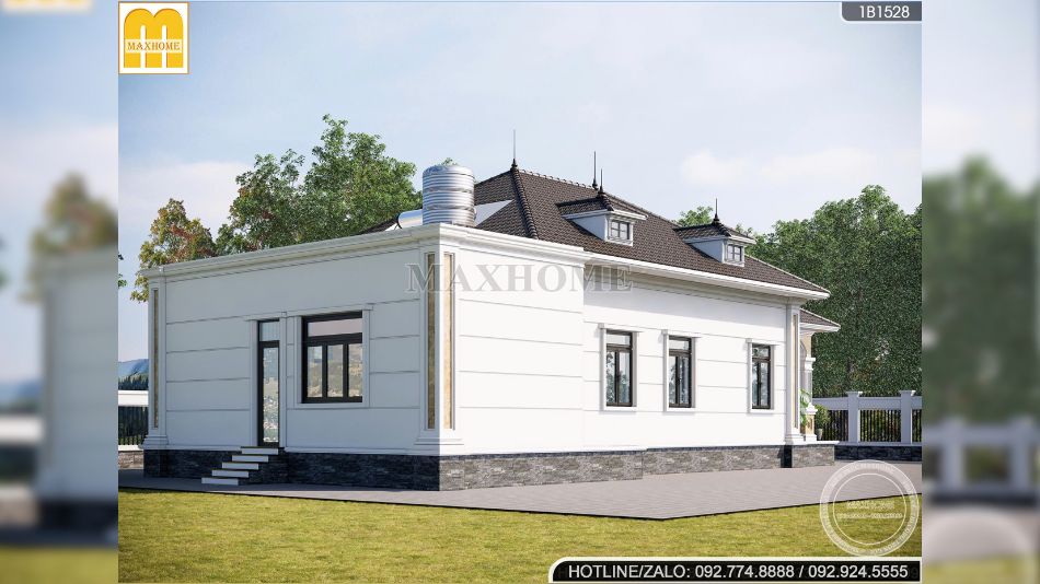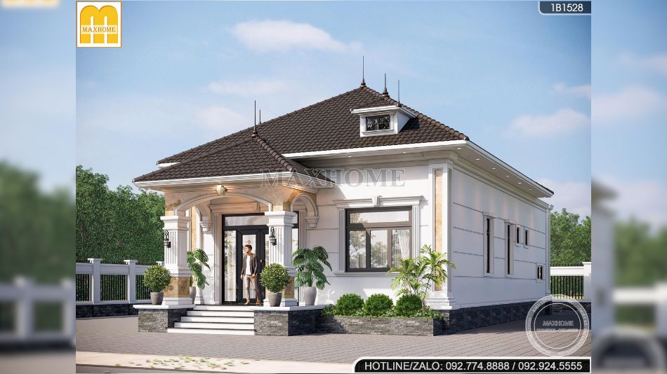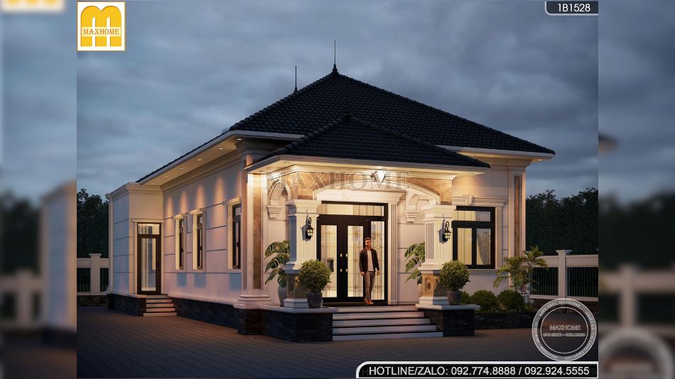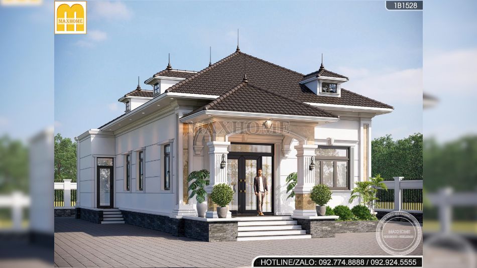 Không cần quá đồ sộ hay cầu kỳ, mẫu nhà vườn 1 tầng tân cổ điển mái Nhật ghi dấu ấn bằng vẻ đẹp tinh tế, sang trọng vừa đủ và giá trị bền vững theo thời gian. Sự kết hợp hài hòa giữa đường nét tân cổ điển thanh lịch và hệ mái Nhật cân đối giúp tổng thể công trình luôn cao ráo, trang nhã và không lỗi mốt. Khám phá thiết kế do Maxhome thực hiện cho gia đình cô Hương tại Thanh Hóa để cảm nhận rõ không gian sống tiện nghi, chỉn chu trong từng chi tiết, nơi thẩm mỹ và công năng được cân bằng hài hòa, càng sử dụng lâu dài càng thấy đáng giá.