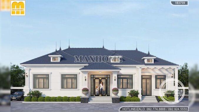 Thêm vào đó, sự kết hợp của công trình với mái Thái là một trong những điểm nhấn của mẫu nhà 1 tầng mái Thái đẹp. Điều này có tác dụng khiến cho không gian ngôi nhà thêm phần thoáng và rộng rãi hơn, phù hợp với điều kiện khí hậu nước ta, đặc biệt nó còn góp phần khẳng định giá trị cho mẫu nhà 1 tầng về giá trị thẩm mỹ cao trong không gian sống.