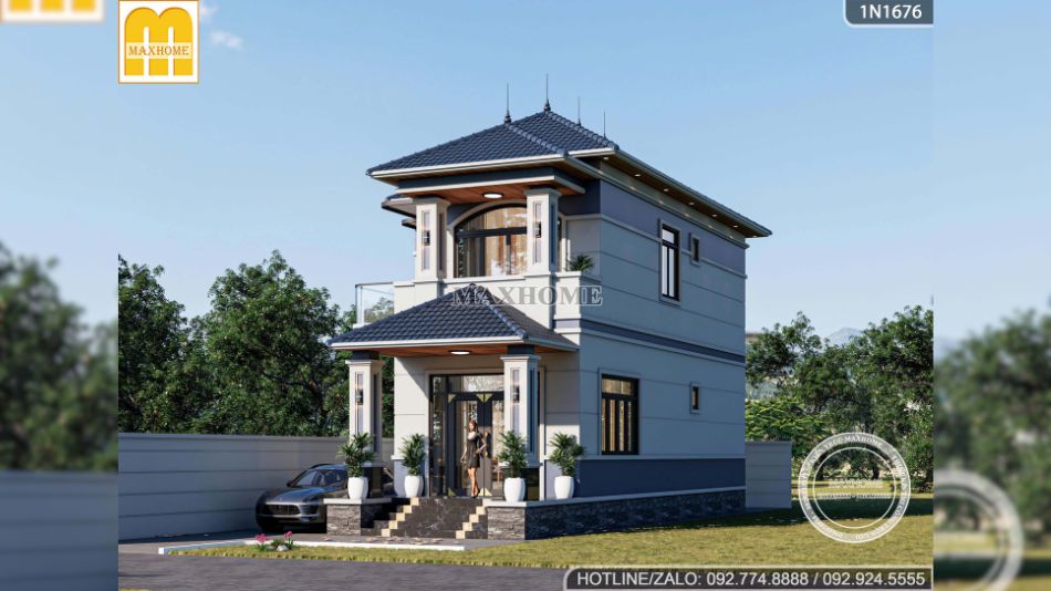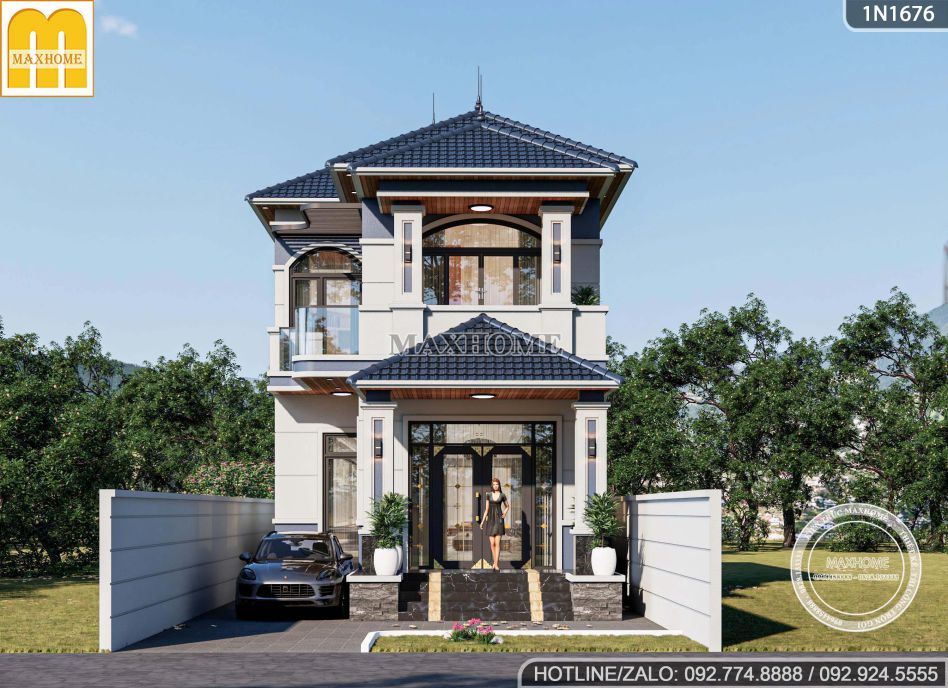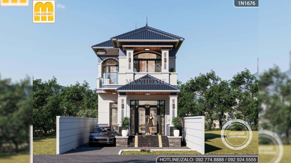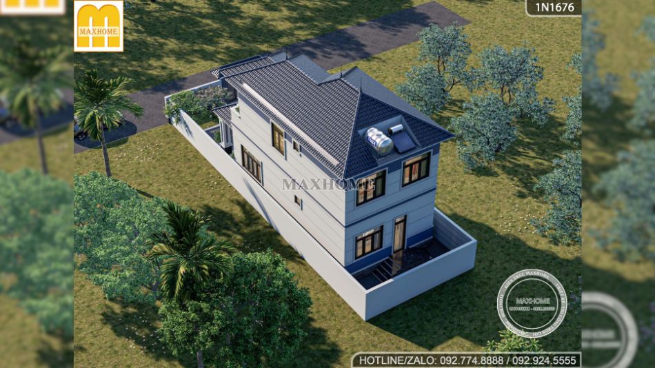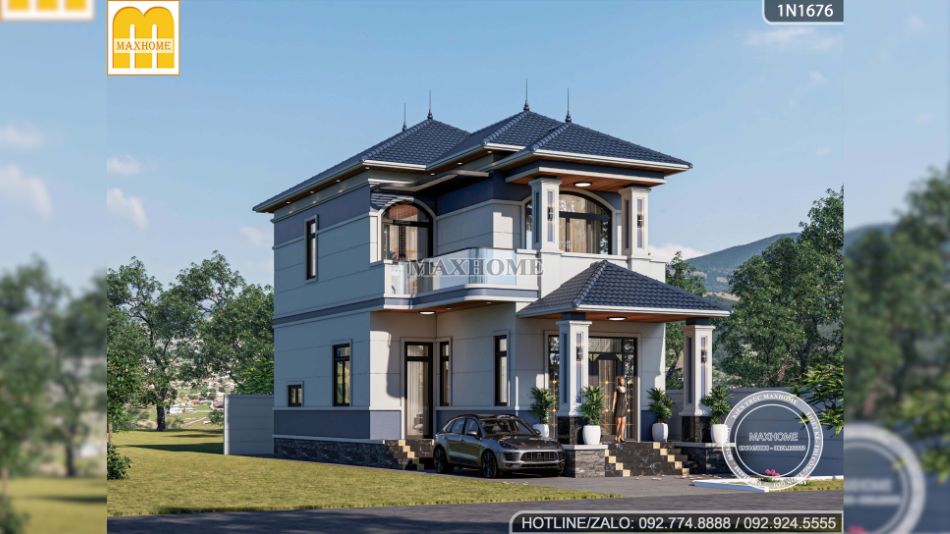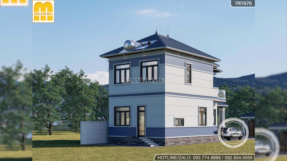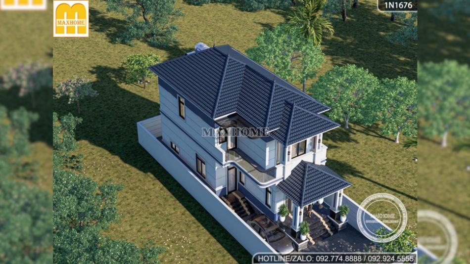 Bên cạnh đó, hệ mái Nhật giật cấp xếp lớp tinh tế với tone màu xanh than đặc trưng, vừa giúp công trình trở nên bề thế hơn, vừa đảm bảo khả năng chống nóng, thoát nước tốt và bền bỉ theo thời gian. Tổng thể kiến trúc được Maxhome thể hiện chỉn chu đến từng chi tiết, xứng đáng là mẫu nhà Quốc Dân được nhiều gia chủ yêu thích nhất hiện nay.