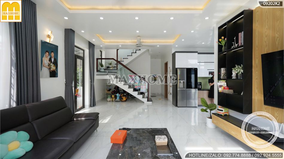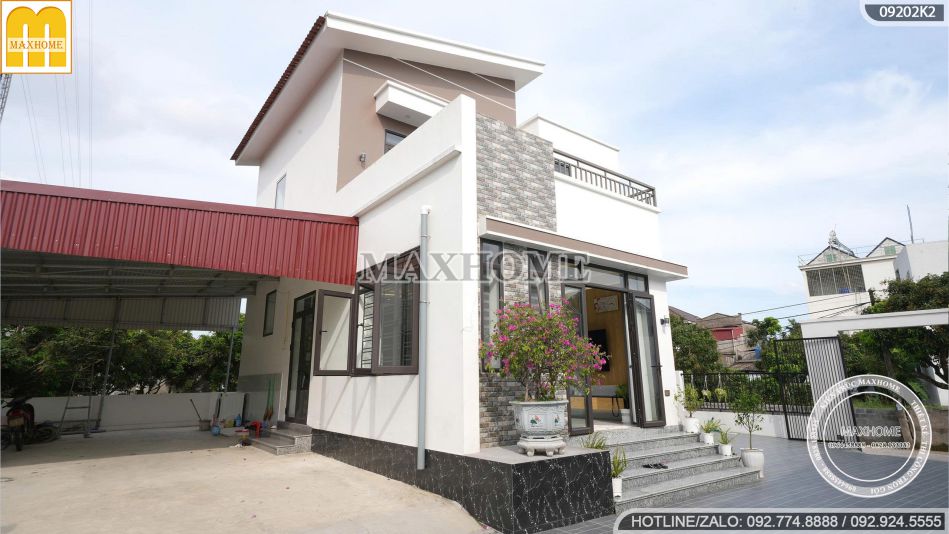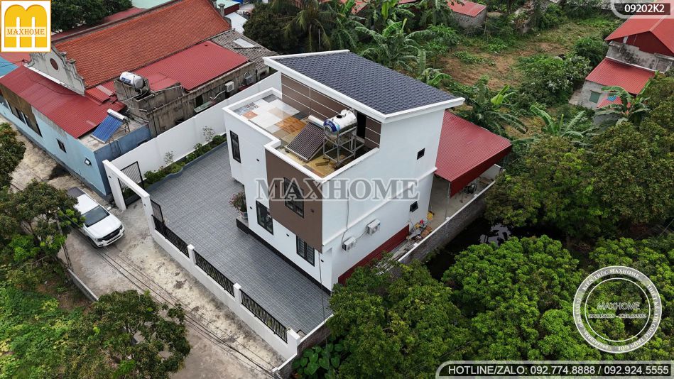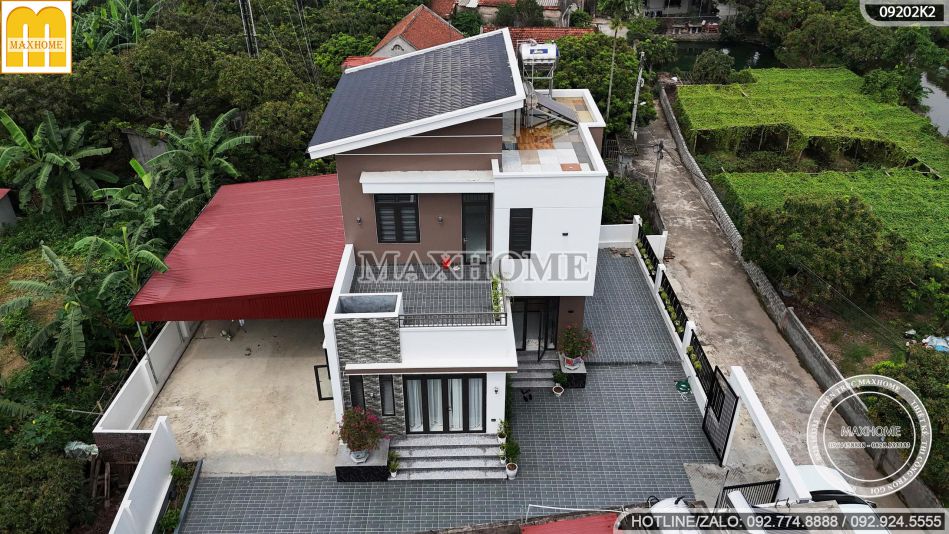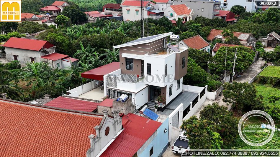 Khám phá thực tế siêu phẩm nhà 2 tầng mái lệch do Maxhome thiết kế và thi công trọn gói cho gia đình anh Phúc tại Hưng Yên. Công trình không chỉ gây ấn tượng với kiến trúc hiện đại, tinh tế mà còn được thiết kế tối ưu công năng, đảm bảo sự tiện nghi và thoải mái trong từng không gian sinh hoạt. Sự kết hợp hài hòa giữa vẻ đẹp bề thế, đẳng cấp cùng nội thất tiện nghi đã tạo nên một không gian sống lý tưởng, đáp ứng trọn vẹn nhu cầu sinh hoạt của gia chủ.