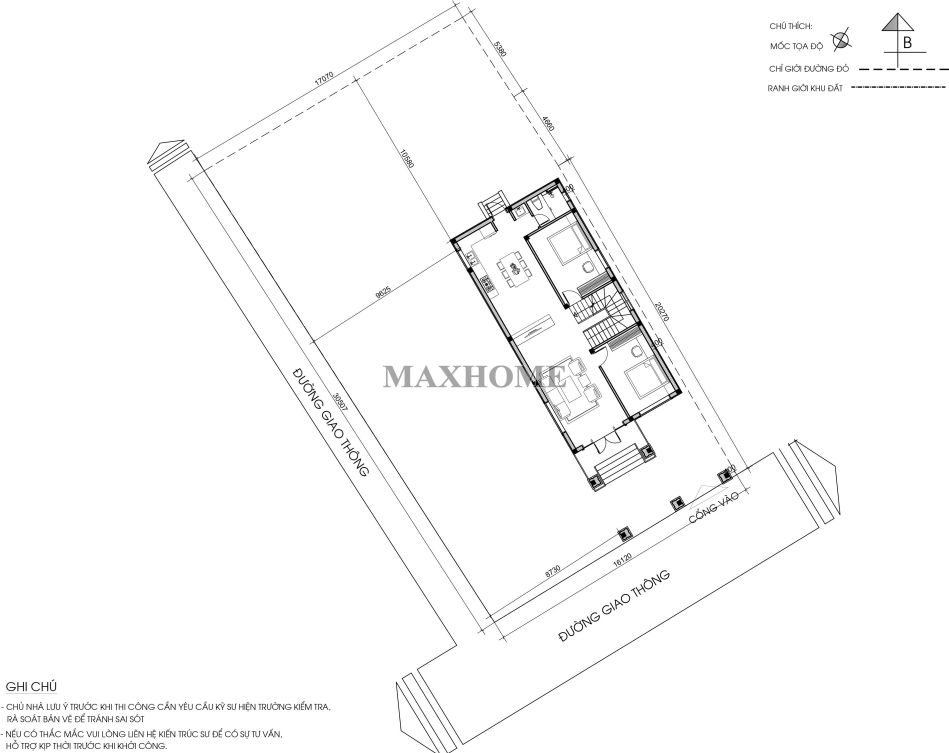 Công trình được xây dựng trên khuôn viên đất rộng rãi, vị trí tiếp giáp trực tiếp với mặt đường giao thông, thuận tiện cho việc di chuyển và kết nối sinh hoạt hằng ngày. Mẫu nhà 2 tầng mái Nhật có kích thước xây dựng 7 x 19,6m, được bố trí hợp lý để tối ưu diện tích và đảm bảo sự thông thoáng cho không gian sống. Nhờ cách tổ chức mặt bằng khoa học, tổng diện tích sử dụng của ngôi nhà đạt khoảng 235m², đáp ứng đầy đủ nhu cầu sinh hoạt, nghỉ ngơi và thư giãn của gia đình, đồng thời mang lại sự tiện nghi và thoải mái trong quá trình sử dụng lâu dài.
