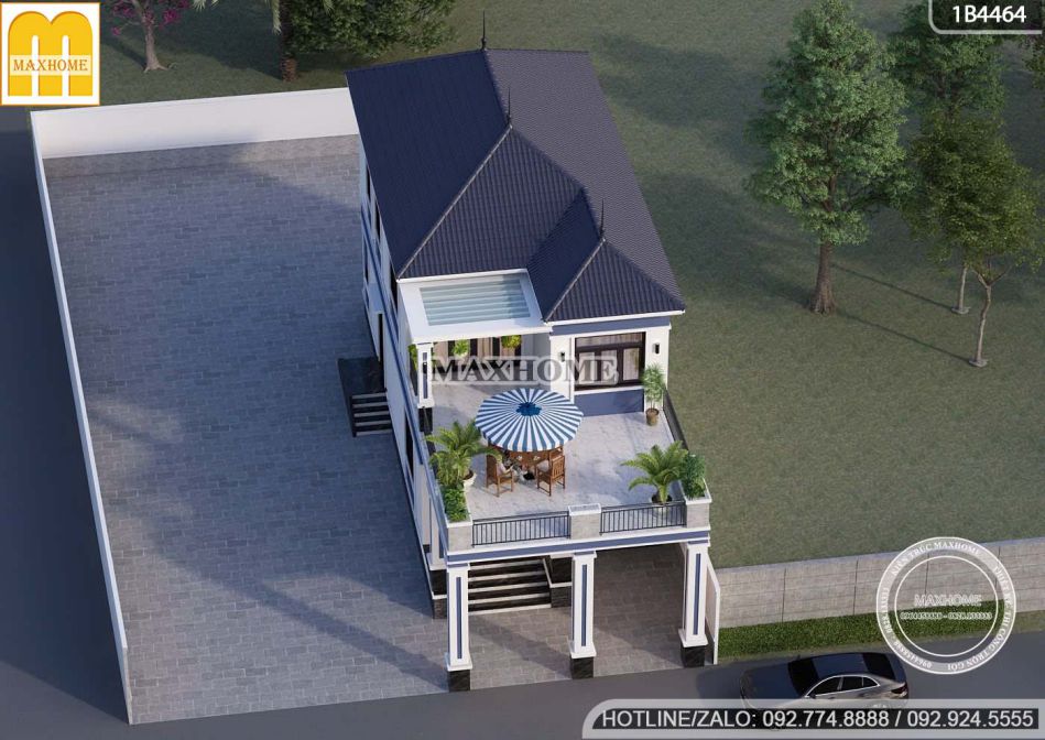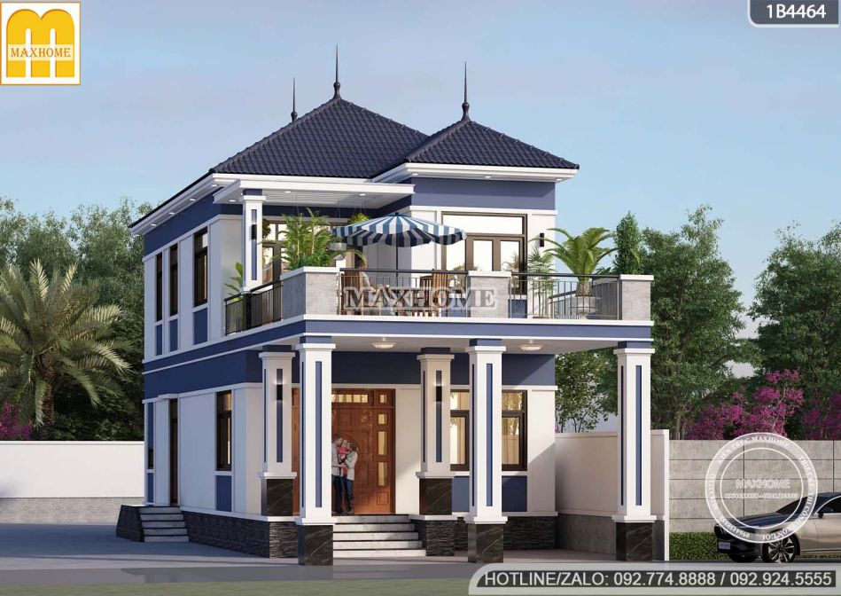 Mê mẩn mẫu thiết kế nhà 2 tầng mái Nhật có sân thượng chill cực đẹp | MH05899