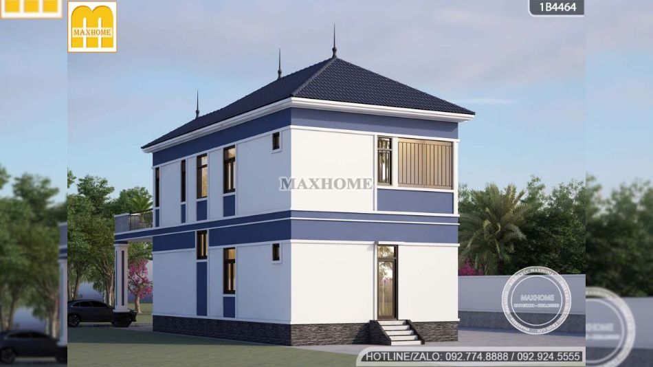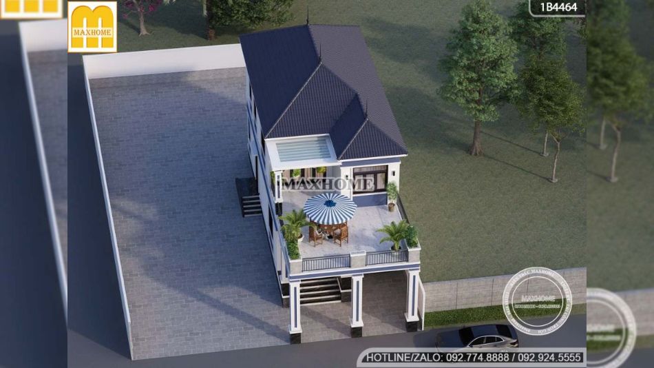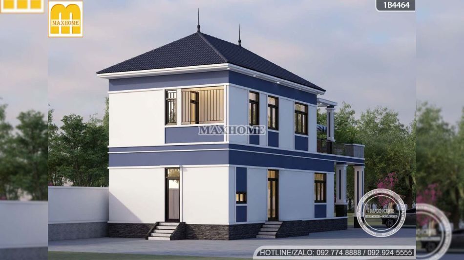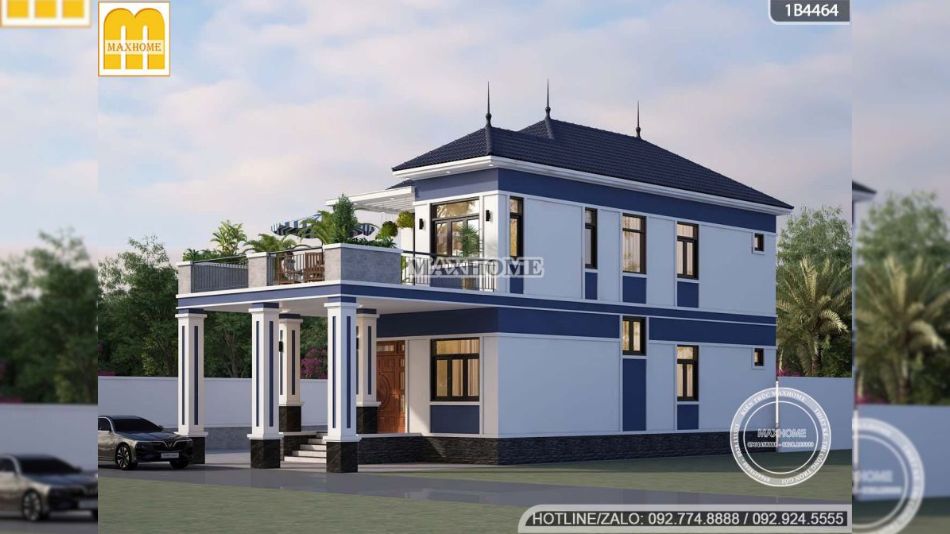 Mê mẩn mẫu thiết kế nhà 2 tầng mái Nhật có sân thượng chill cực đẹp | MH05899