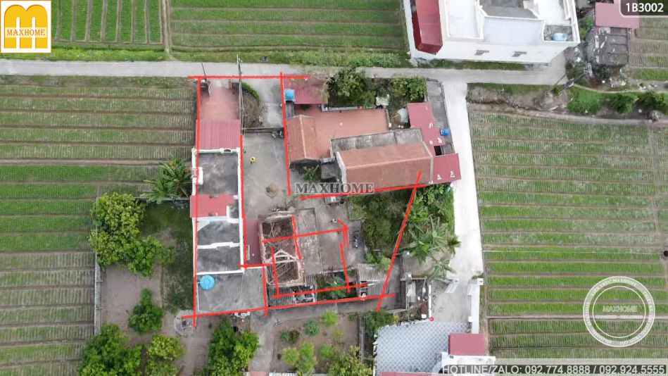 Mặt bằng định vị được đội ngũ kỹ thuật Maxhome trực tiếp đến khu đất nhà anh Hùng để ghi lại hình ảnh thực trạng khu đất như nào, đồng thời đo đạc chuẩn trước khi tiến hành thiết kế và xây dựng nhà 2 tầng hiện đại cho gia đình anh. Nhà anh Hùng ở gần ngay đoạn đường rộng rãi, thoải mái nên việc vận chuyển vật tư xây dựng sau này sẽ rất dễ dàng.