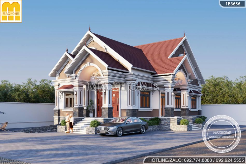 Choáng ngợp trước mẫu biệt thự tân cổ điển mái Thái 1 tầng 1 hầm đẳng cấp | MH05644
