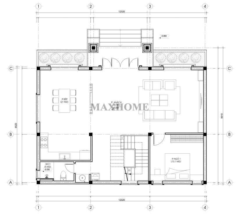 Diện tích xây dựng: 12,3 x 9,9m