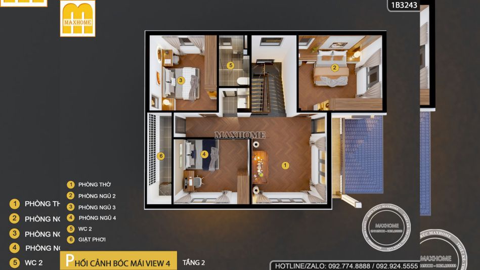 Mẫu nhà 2 tầng mái Nhật hiện đại được Maxhome thiết kế đầy tiện nghi | MH05441