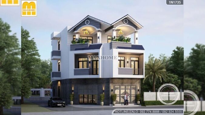 Ngôi nhà sở hữu phong cách hiện đại cùng với cách phối màu trắng – ghi chủ đạo ở mặt tiền rất hài hòa, nhẹ nhàng mang lại vẻ đẹp cuốn hút.