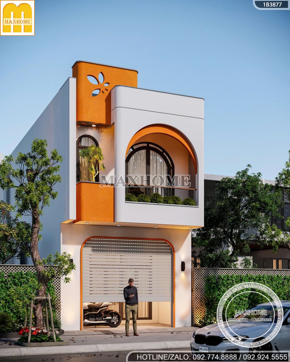 Ngắm nhìn mẫu nhà ống 2 tầng 5x17m với những đường cong mềm mại kết hợp phối màu ấn tượng, nhiều gia chủ dễ dàng bị chinh phục ngay từ ánh nhìn đầu tiên. Công trình do Maxhome lên phương án thiết kế cho gia đình chị Huyền tại Hưng Yên, khéo léo dung hòa giữa thẩm mỹ hiện đại, hình khối uyển chuyển và gam màu hài hòa. Nhờ đó, ngôi nhà không chỉ sở hữu mặt tiền nổi bật giữa khu phố mà còn đáp ứng trọn vẹn mong muốn về không gian sống đẹp, thoáng đãng và bền vững theo thời gian.