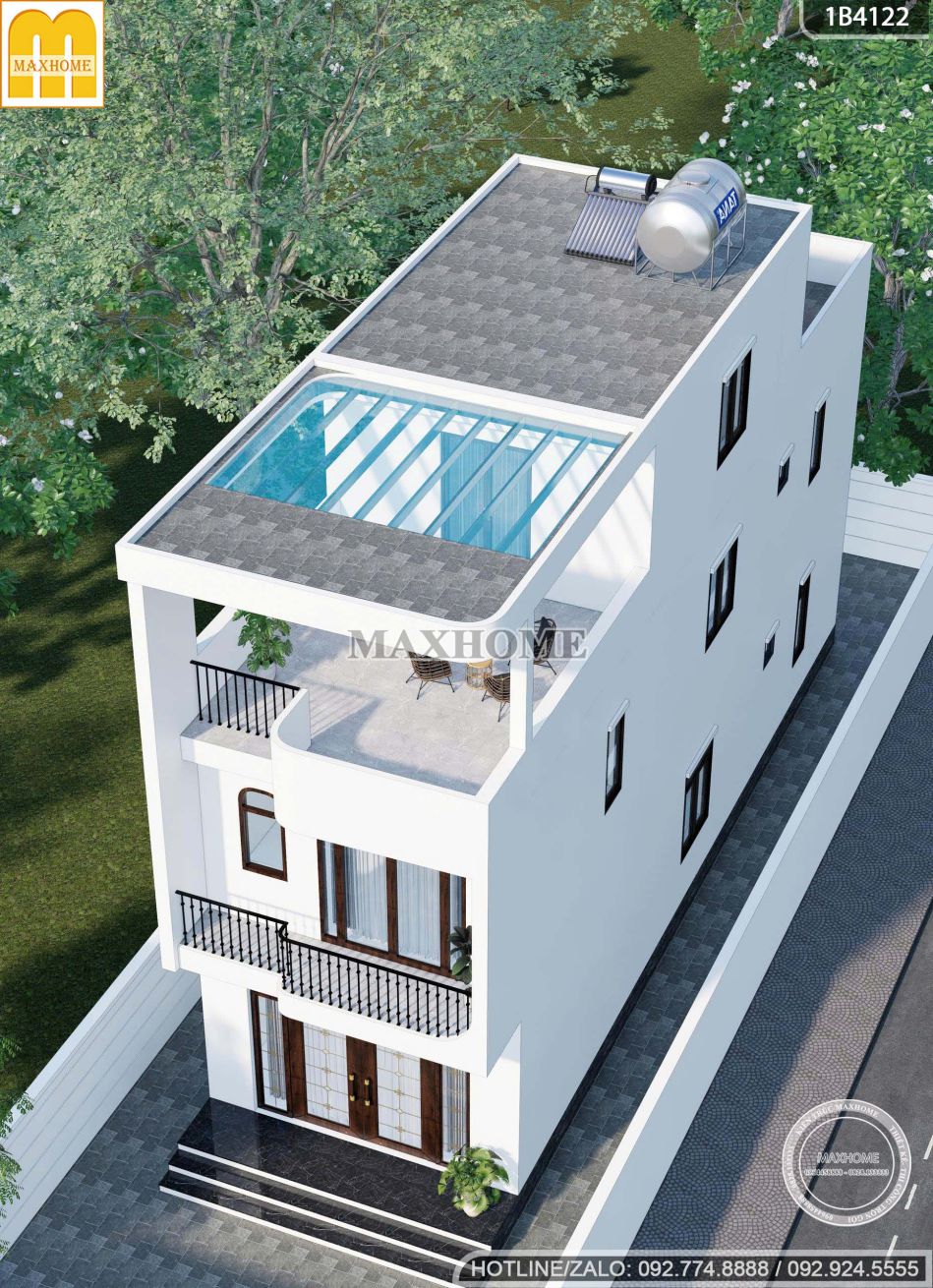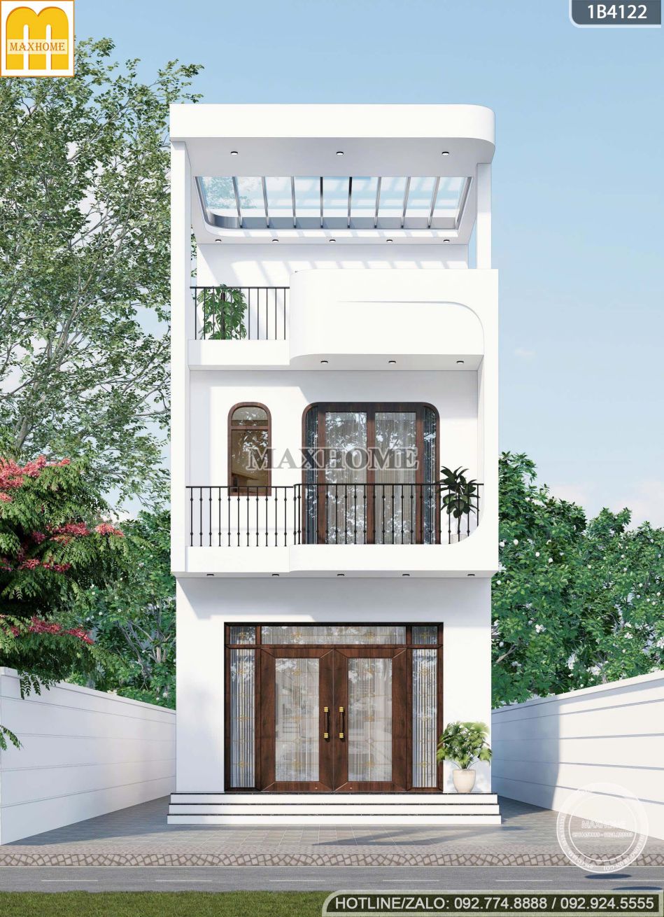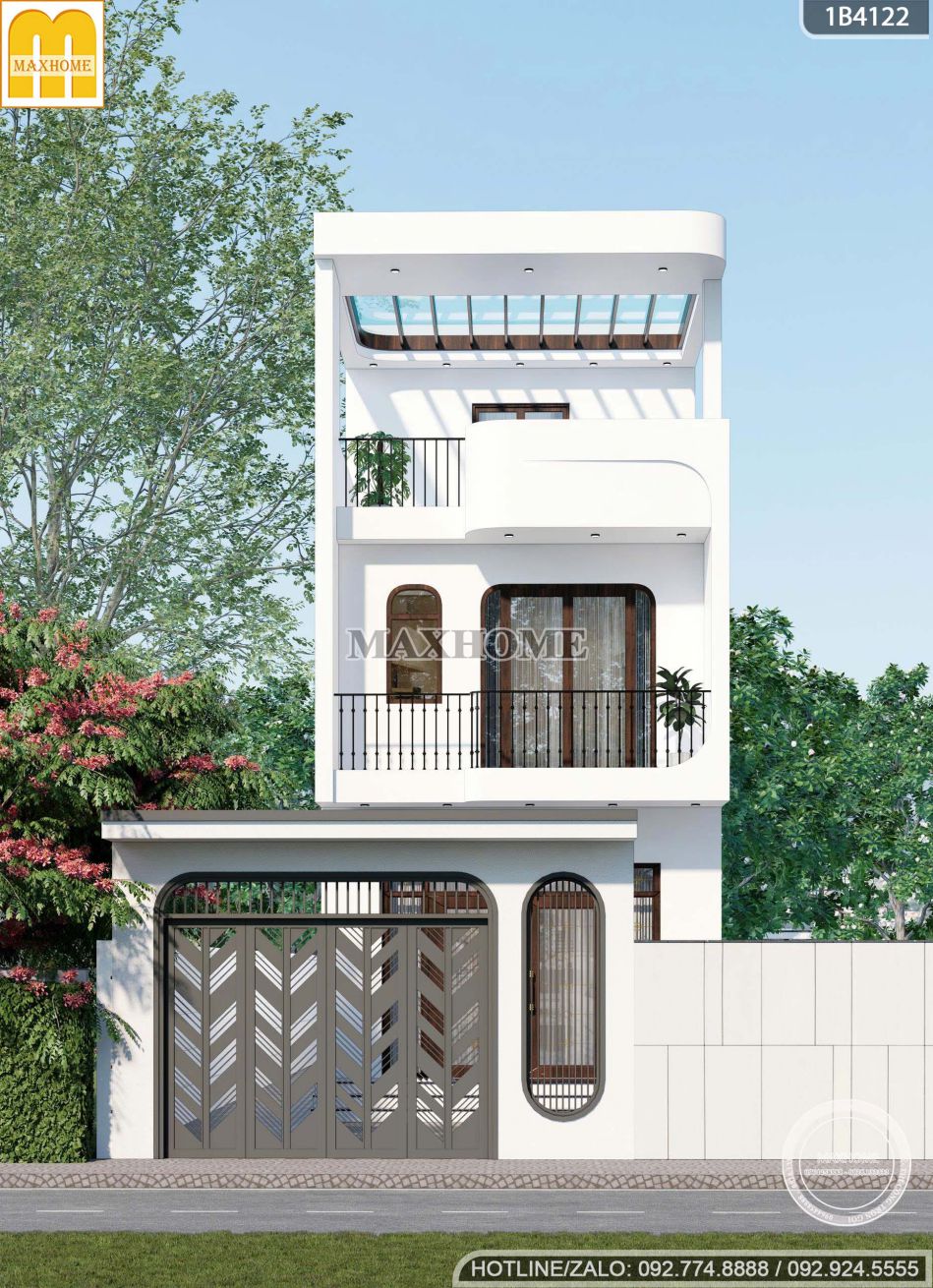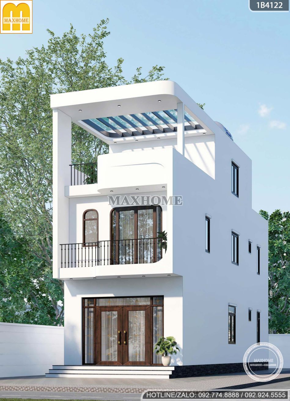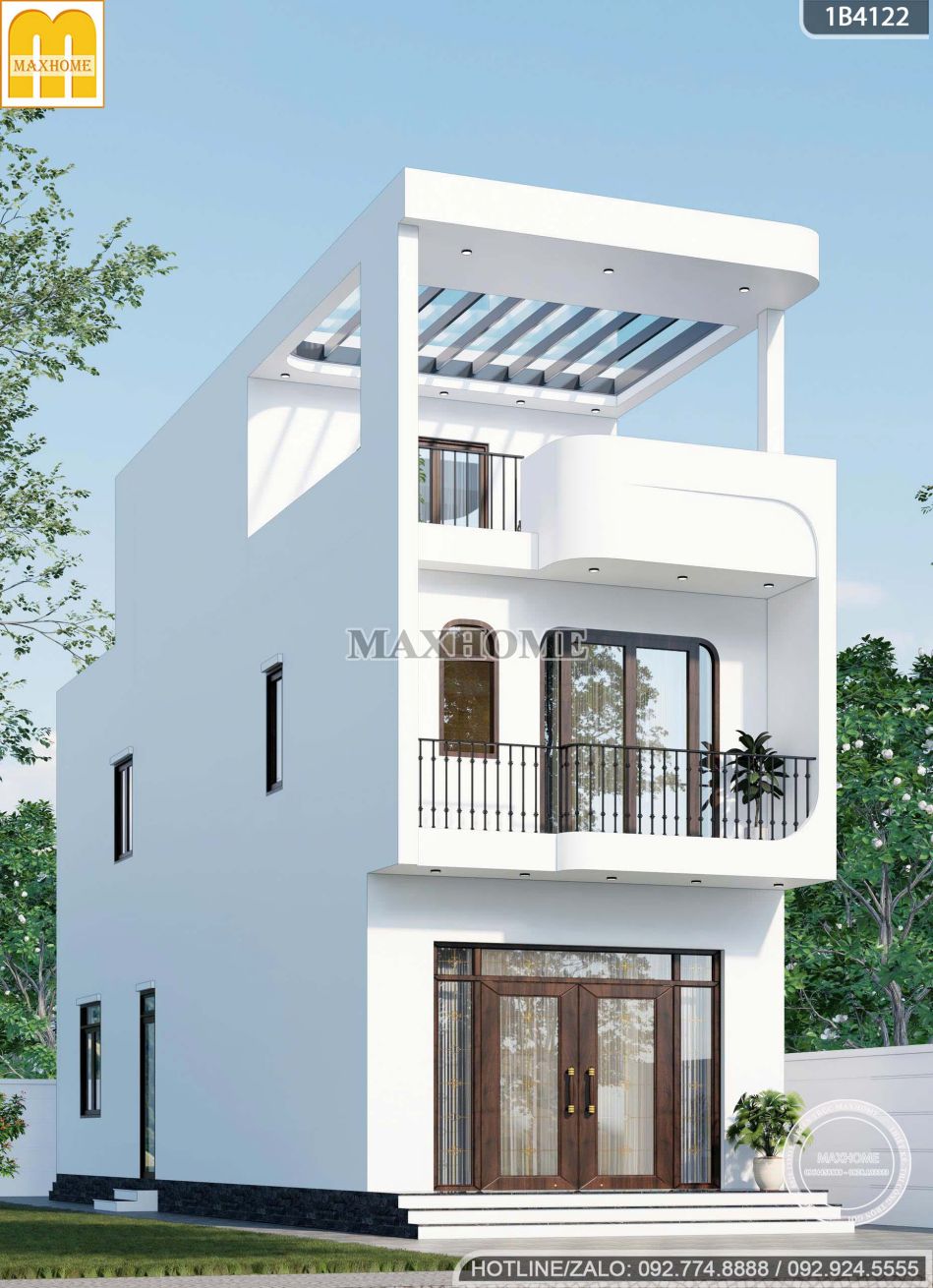 Nhà phố 2 tầng 1 tum màu trắng: đơn giản mà sang trọng | MH05955