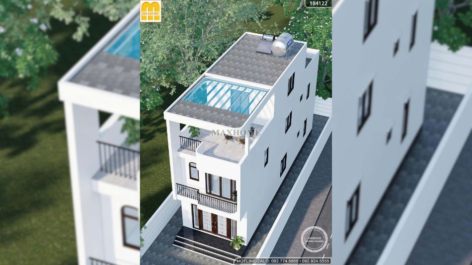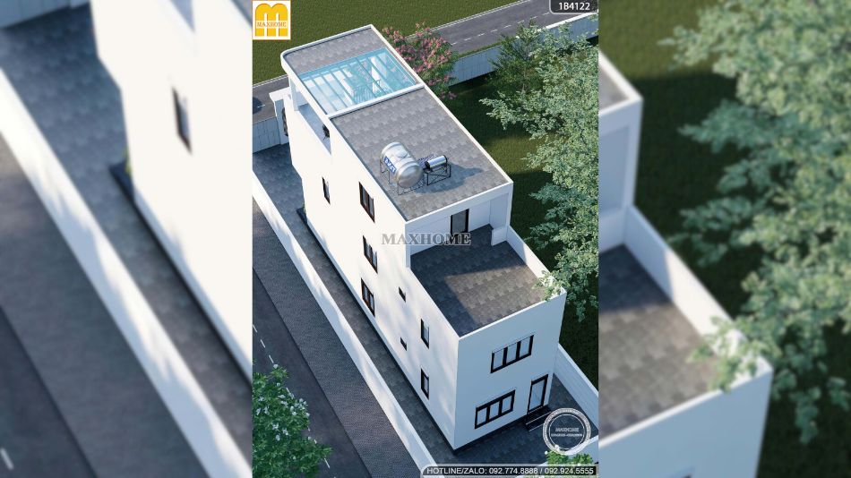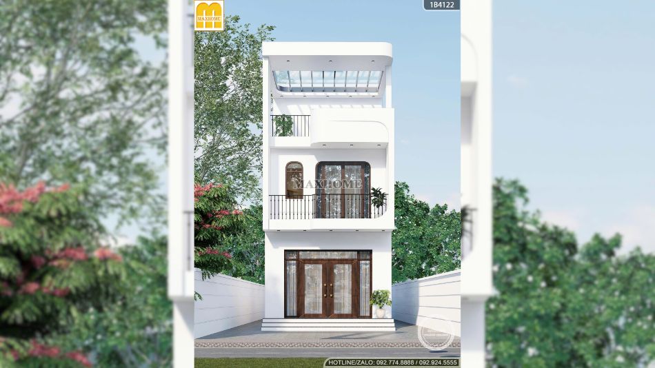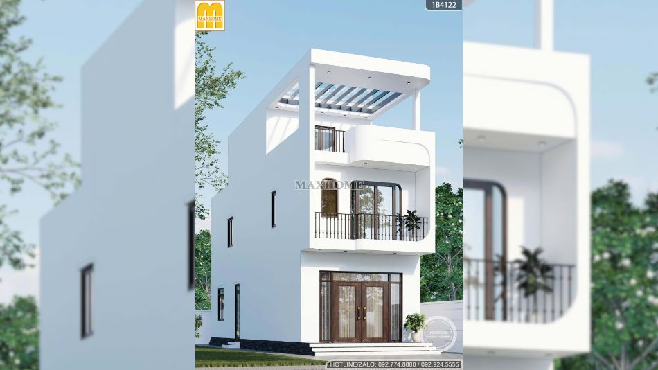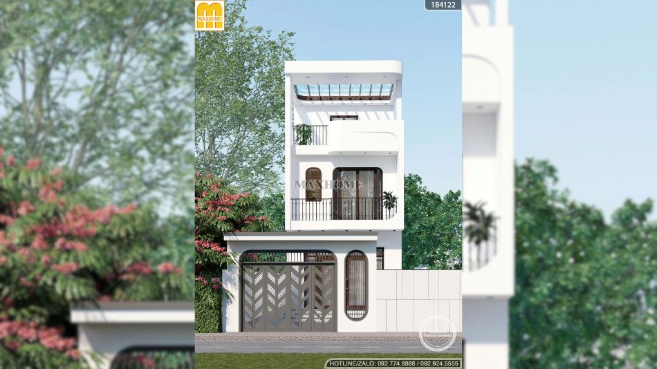 Nhà phố 2 tầng 1 tum màu trắng: đơn giản mà sang trọng | MH05955