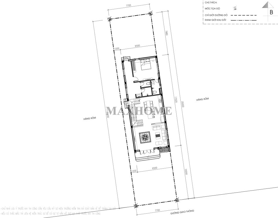 Maxhome không chỉ chú trọng vào công năng mà còn đề cao giá trị sống – nơi mỗi góc nhà đều mang lại cảm giác thư giãn, truyền cảm hứng làm việc và nuôi dưỡng những khoảnh khắc ý nghĩa cho gia đình. Ngôi nhà được xây dựng trên khu đất hướng Đông Bắc, với kích thước 6,5 x 17m gọn gàng, phù hợp với đặc thù nhà phố đô thị. Tổng diện tích sử dụng khoảng 280m², bố trí 5 phòng ngủ rộng rãi, đáp ứng nhu cầu sinh hoạt thoải mái cho các thành viên.