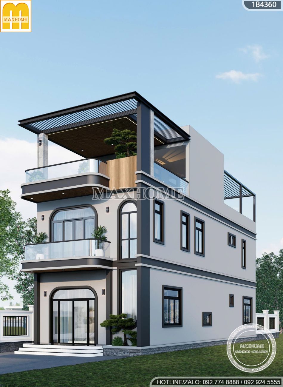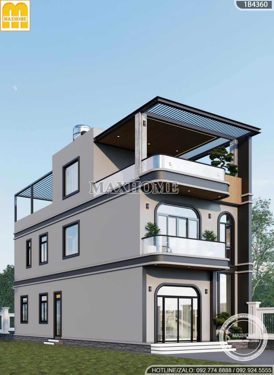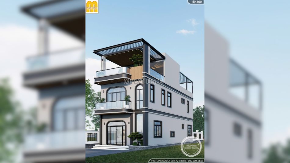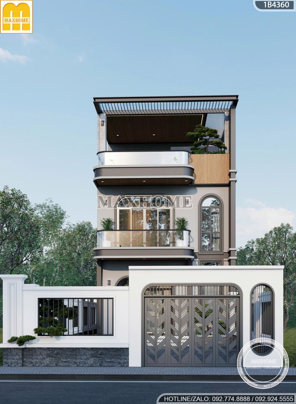 Nhà phố 2 tầng 1 tum thiết kế đường cong siêu cuốn hút, công năng tiện nghi | MH06032