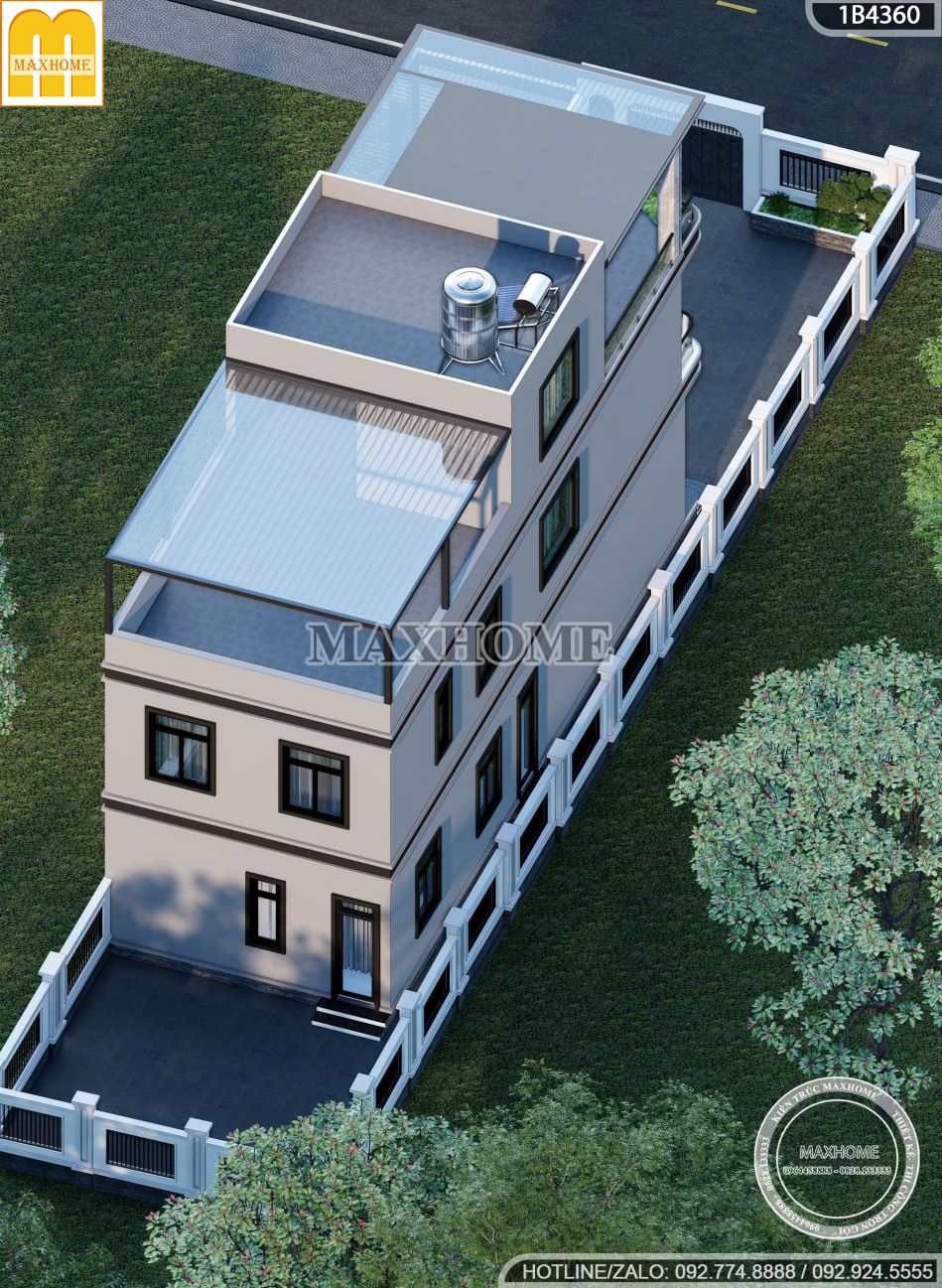 Tầng tum được bố trí gọn gàng và linh hoạt, chủ yếu dành cho không gian sân chơi ngoài trời, mang đến khoảng thở thoáng đãng cho toàn bộ ngôi nhà phố. Khu vực sân chơi có diện tích rộng, thuận tiện để gia chủ bố trí bàn trà, ghế thư giãn, trồng cây xanh hoặc tổ chức những buổi sinh hoạt nhẹ nhàng ngoài trời.