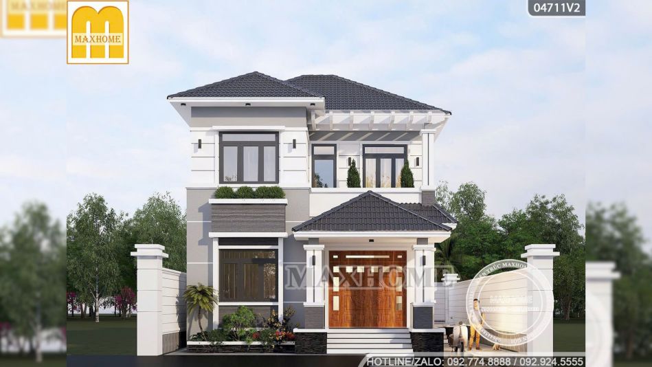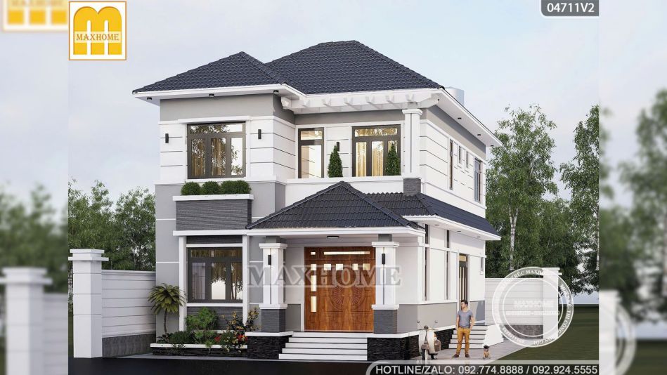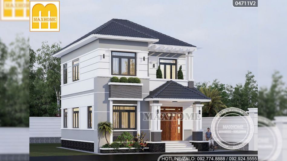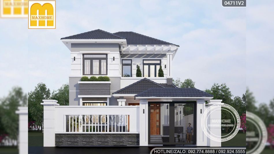 Maxhome không sử dụng những gam màu quá nổi bật mà chúng tôi lựa chọn tông trắng và xám ghi làm chủ đạo cho ngoại thất. Màu trắng tinh khôi mang đến cảm giác sạch sẽ và sang trọng, trong khi màu xám ghi lại tạo chiều sâu giúp công trình thêm phần vững chắc.