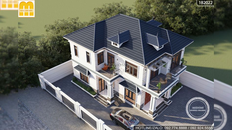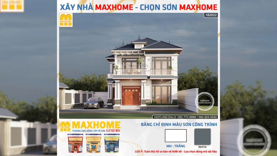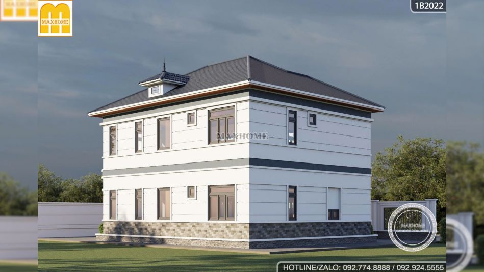 Mẫu nhà 2 tầng 4 phòng ngủ lần này Maxhome giới thiệu sở hữu diện tích lên tới 230m2 mang vẻ đẹp hiện đại, sang trọng nhưng vẫn giữ được sự tinh tế trong từng chi tiết. Từ màu sơn, vật liệu cho đến cách bố trí ngoại thất đều được đội ngũ thiết kế Maxhome nghiên cứu kỹ lưỡng để tạo nên một không gian sống lý tưởng và đáp ứng đầy đủ công năng cho gia đình nhiều thế hệ.