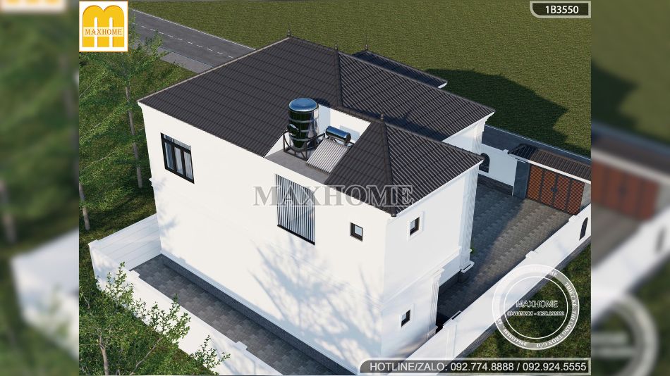 Đây không chỉ là lựa chọn mang giá trị thẩm mỹ cao mà còn giúp công trình thích nghi tốt với khí hậu nhiệt đới ẩm gió mùa ở Việt Nam. Mái dốc thoát nước nhanh, chống nóng, chống ẩm hiệu quả, đảm bảo không gian nội thất bên trong luôn thoáng mát và bền bỉ qua năm tháng.