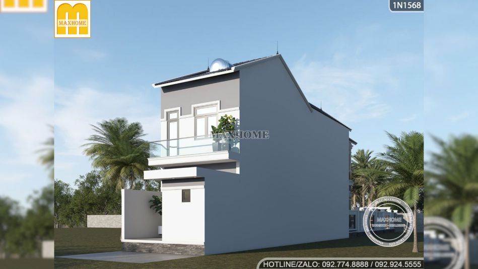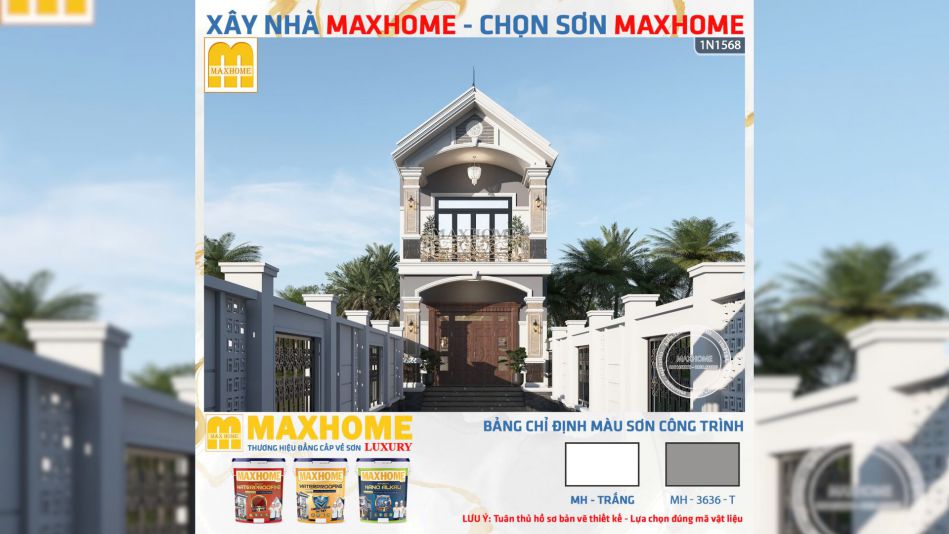Tầng 1 và tầng 2 của nhà anh Thế được thiết kế tương đồng nhau và liền mạch nhờ hệ mái vòm cao cùng đường phào chỉ trắng chạy nổi trên nền tường. Những đường phào chỉ mềm mại này đã giúp mặt tiền trở nên thanh thoát và bắt mắt hơn. Đây chính là điểm khiến nhiều người yêu thích phong cách tân cổ điển vì sự sang trọng nhưng không nặng nề. Khi đứng trước ngôi nhà anh Thế, bạn sẽ thấy rõ cách Maxhome chọn lọc từng chi tiết để tạo nên tính đồng bộ mà vẫn giữ được nét đặc trưng của mẫu nhà phố 2 tầng mái Thái.