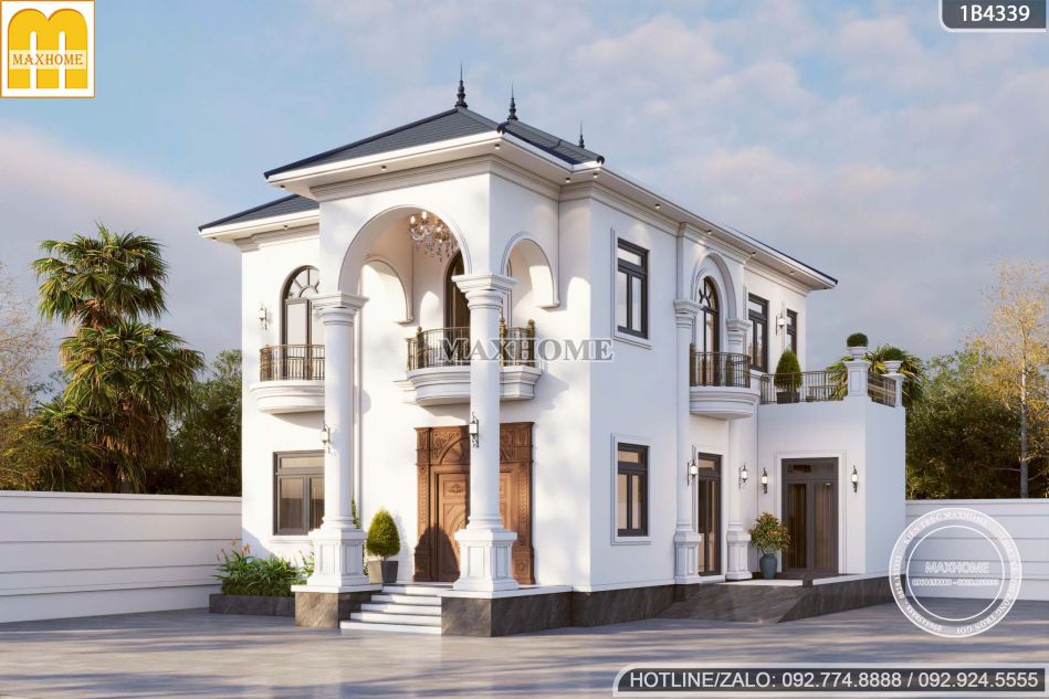 Điểm nhấn nổi bật của công trình nằm ở các chi tiết đặc trưng như hệ vòm mềm mại, cột trụ cao thông tầng với tỷ lệ cân đối cùng những đường phào chỉ được xử lý tinh xảo. Sự kết hợp hài hòa giữa mái Nhật thanh thoát và các yếu tố tân cổ điển đã tạo nên diện mạo bề thế, đẳng cấp nhưng vẫn giữ được nét gần gũi, phù hợp với điều kiện khí hậu và thẩm mỹ của nhiều gia đình Việt.