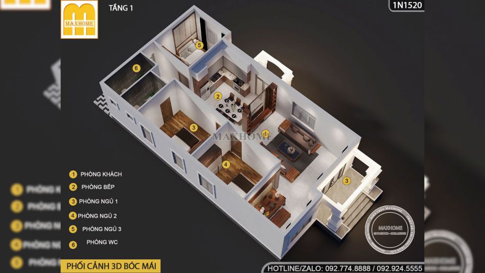 Về không gian nghỉ ngơi, ngôi nhà sở hữu 3 phòng ngủ tiện nghi với phòng ngủ 01 rộng 13m2, phòng ngủ 02 rộng 14,5m2 và phòng ngủ 03 rộng 12m2, đảm bảo sự riêng tư và thoải mái cho từng thành viên. Ngoài ra, hệ thống vệ sinh và khu vực giặt phơi được bố trí khéo léo phía cuối nhà giúp sinh hoạt hằng ngày trở nên vô cùng thuận tiện và gọn gàng.