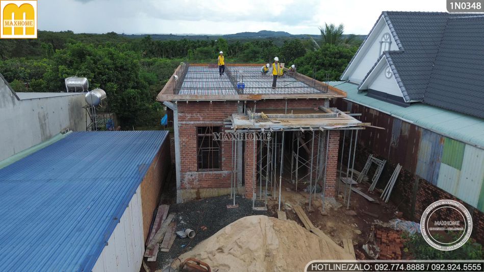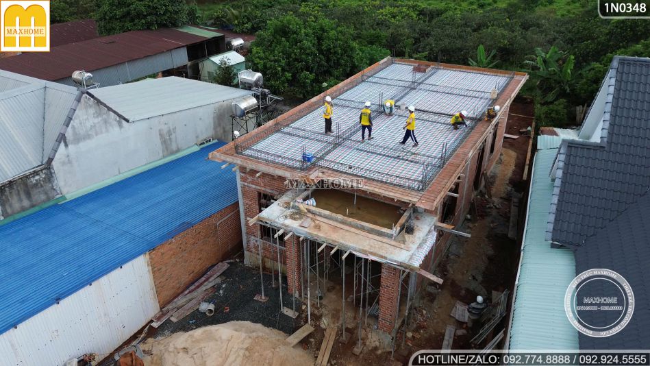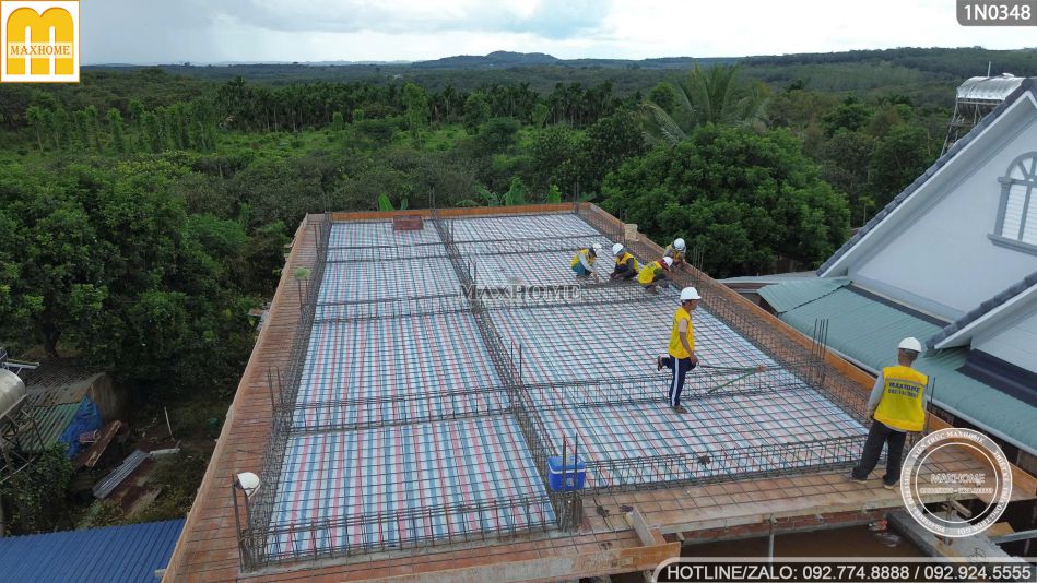 Đến với vùng quê Bình Phước, bạn sẽ bắt gặp công trình nhà vườn của gia đình chị Chung đang được thi công rất chỉn chu. Mẫu nhà đẹp này do Maxhome thiết kế và thi công trọn gói, đây cũng là công trình được nhiều người quan tâm khi đi qua bởi quy mô bề thế cùng cách thi công cẩn trọng, bài bản. Hôm nay Maxhome kiểm tra tiến độ thi công trước khi đổ bê tông sàn mái cho công trình.