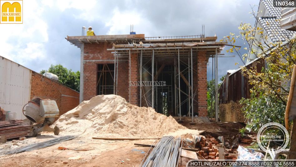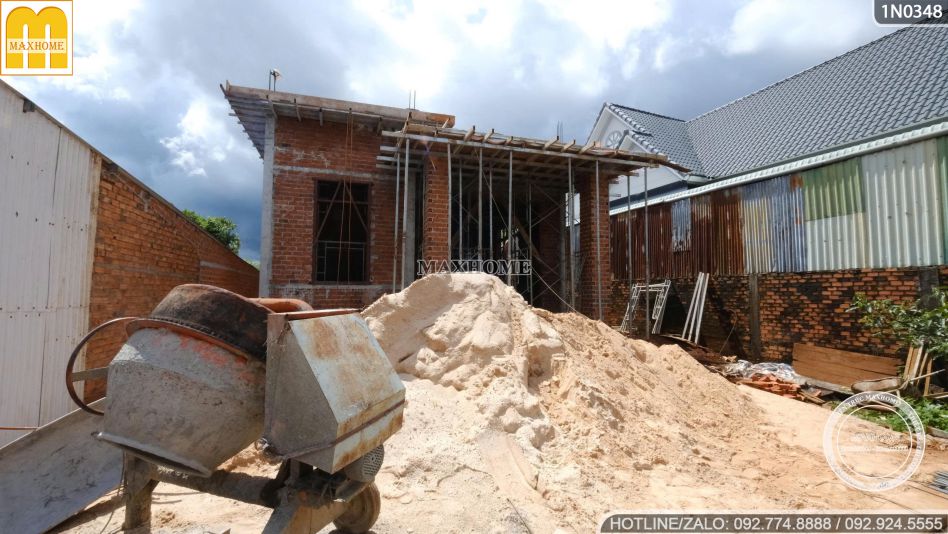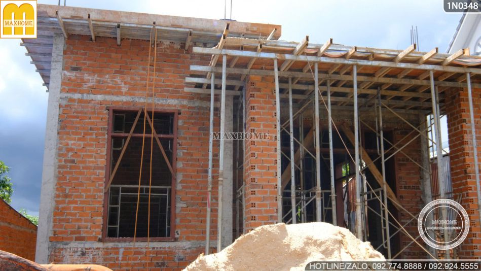 Trong quá trình thi công, toàn bộ công trình đều sử dụng cây chống sắt thay vì gỗ truyền thống giúp gia tăng độ chắc chắn, hạn chế rủi ro và đảm bảo sự an toàn tuyệt đối. Đây là một điểm khác biệt thường thấy trong các công trình của Maxhome, cho thấy sự đầu tư và chuyên nghiệp từ những chi tiết nhỏ nhất.