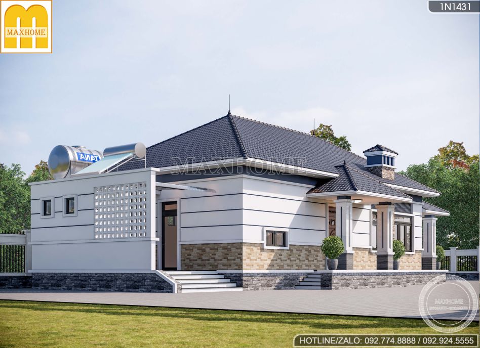 Với mặt tiền không quá rộng, nhiều gia chủ thường cho rằng việc thiết kế nhà vườn sẽ gặp không ít khó khăn, đặc biệt là trong khâu bố trí không gian và tạo điểm nhấn thẩm mỹ. Tuy nhiên, thông qua quá trình tính toán kỹ lưỡng về tỷ lệ, công năng và cảnh quan, các kiến trúc sư Maxhome đã đưa ra giải pháp thiết kế phù hợp với đặc điểm khuôn viên đất. Mẫu nhà cấp 4 mái Nhật này chính là minh chứng rõ nét cho một công trình được thiết kế bài bản, khoa học, vừa tối ưu diện tích sử dụng, vừa đảm bảo sự hài hòa giữa kiến trúc và không gian sân vườn, mang lại trải nghiệm sống tiện nghi và thoải mái cho gia chủ.