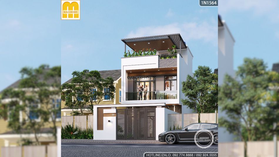 Mẫu nhà phố 2 tầng 1 tum của gia đình anh Sử ở Lâm Đồng do Maxhome thiết kế mang đến cảm giác sang trọng ngay từ cái nhìn đầu tiên và nổi bật giữa khu dân cư. Trong bài viết này, chúng ta sẽ cùng khám phá kỹ hơn những điểm nhấn ấn tượng ở phần ngoại thất của công trình để thấy rõ lý do vì sao kiểu nhà này ngày càng được ưa chuộng.