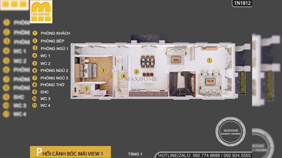 | Loại hình: Nhà phố mái Thái tân cổ điển | Tổng diện tích: 278m2 |