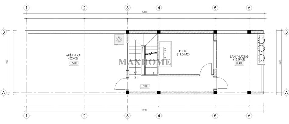 Tầng 3 được bố trí phòng thờ trang nghiêm, là không gian dành cho việc thờ cúng và gìn giữ nét đẹp truyền thống của gia đình. Từ phòng thờ có lối cửa dẫn ra sân thượng thoáng rộng, thuận tiện cho việc sinh hoạt và thư giãn ngoài trời. Khu vực giặt và phơi đồ cũng được thiết kế rộng rãi, đảm bảo sự tiện lợi và khô thoáng trong quá trình sử dụng.