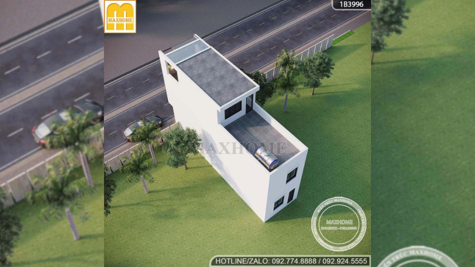 Nhà phố 3 tầng sử dụng hệ mái bằng là lựa chọn hoàn toàn hợp lý trong kiến trúc hiện đại ngày nay. Mái bằng được ưa chuộng nhờ chi phí thi công phải chăng, kết cấu đơn giản và độ bền cao. Đặc biệt, loại mái này ít bị ảnh hưởng bởi gió bão, giúp công trình ổn định và an toàn hơn trong điều kiện thời tiết khắc nghiệt. Ngoài ra, mái bằng còn cho phép tận dụng tối đa diện tích phía trên để làm sân thượng, khu phơi đồ hoặc không gian thư giãn ngoài trời, góp phần tăng tính tiện ích cho ngôi nhà.