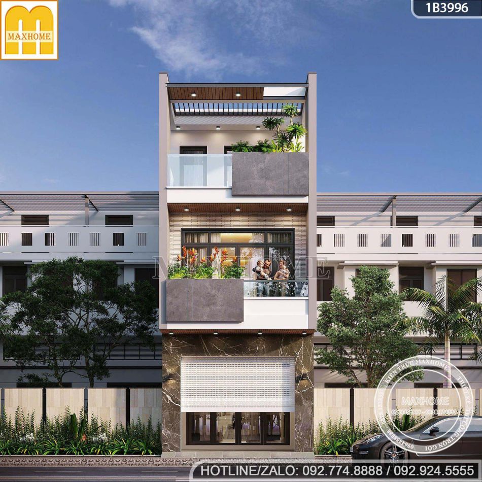 Thiết kế nhà phố 3 tầng hiện đại với phối màu phong thủy hợp mệnh | MH05747