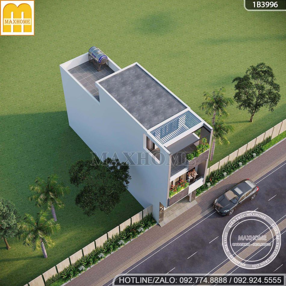 Nhà phố 3 tầng được thiết kế theo phong cách hiện đại với các mảng khối vuông vức, đường nét sắc sảo và loại bỏ hoàn toàn những chi tiết trang trí rườm rà. Kiến trúc tập trung vào sự tinh gọn, bố cục rõ ràng và tính thẩm mỹ bền vững theo thời gian. Với kinh nghiệm dày dặn trong việc thiết kế các mẫu nhà đẹp, Maxhome luôn đảm bảo mang đến cho khách hàng những phương án thiết kế tối ưu, phù hợp nhu cầu khách hàng hiện nay.