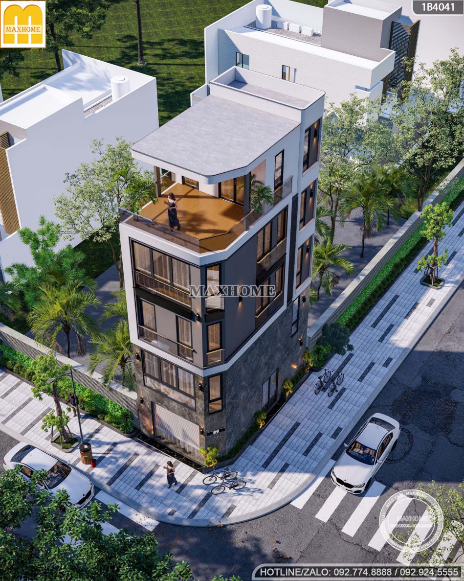 Thiết kế nhà vát góc 4 tầng 1 tum khai thác tối đa ánh sáng tại Long Biên | MH05943