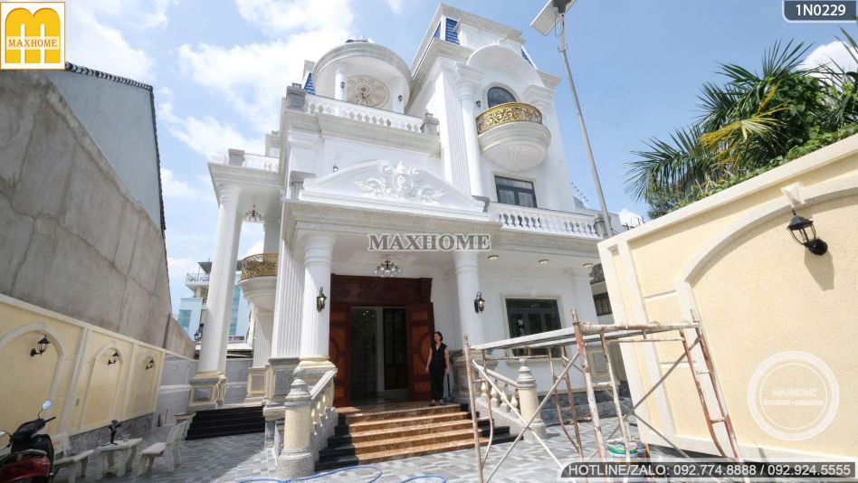 Đây là mẫu biệt thự 3 tầng tân cổ điển mái Mansard đang trong giai đoạn hoàn thiện với quy mô vô cùng bề thế và ấn tượng. Công trình nổi bật với chiều cao đồ sộ, thể hiện sự sang trọng và đẳng cấp trong từng chi tiết kiến trúc. Hiện tại, các hạng mục chính đã được thi công xong, chỉ còn một số phần nội thất đang được hoàn thiện tỉ mỉ để đảm bảo mang đến không gian sống tiện nghi, tinh tế và trọn vẹn nhất cho gia chủ.