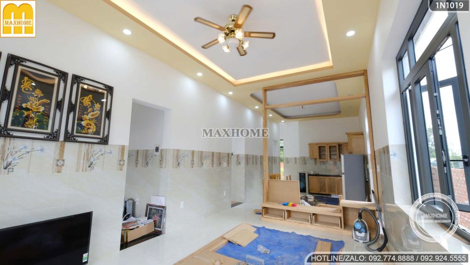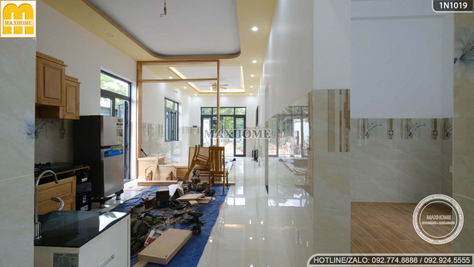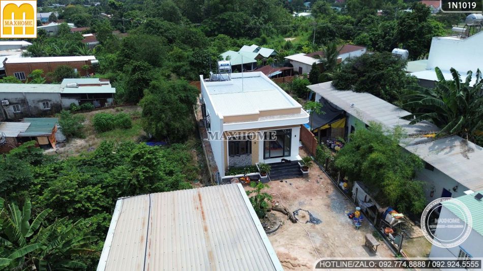 Thực tế mẫu nhà hiện đại 1 tầng siêu đẹp đang hoàn thiện 90% ở Bình Dương