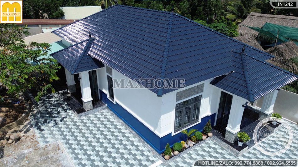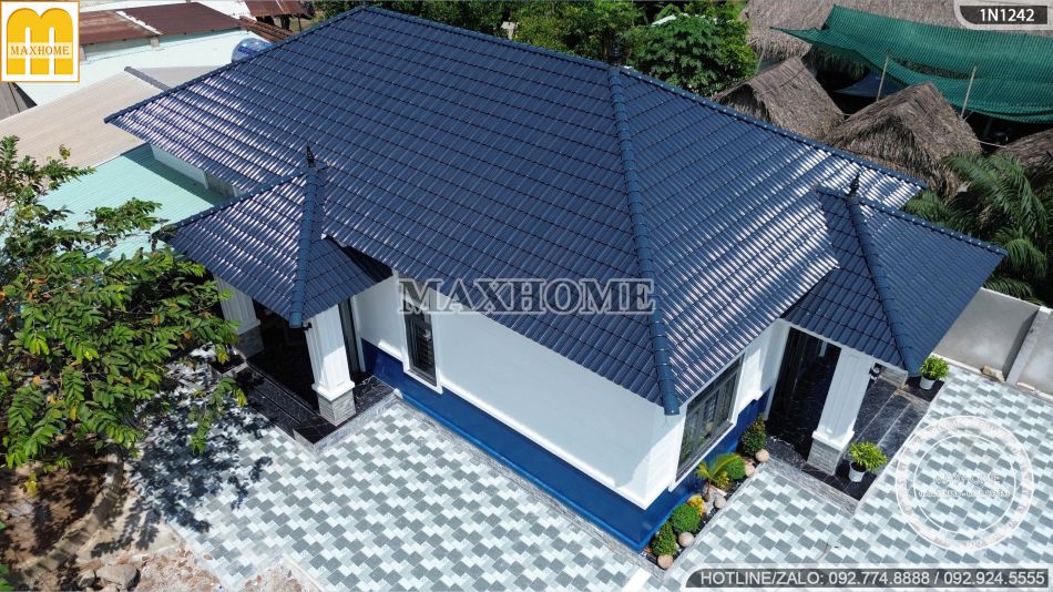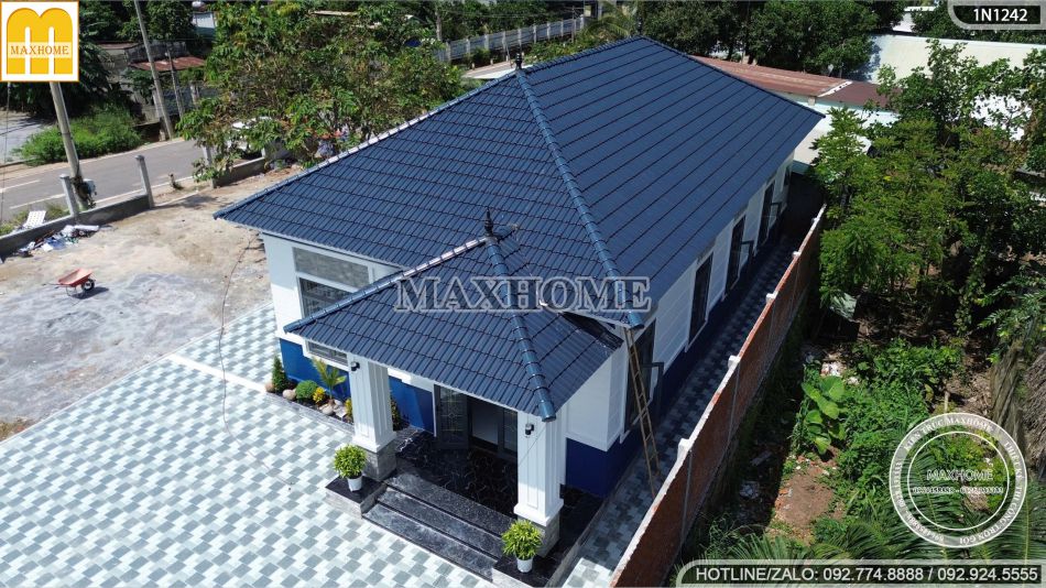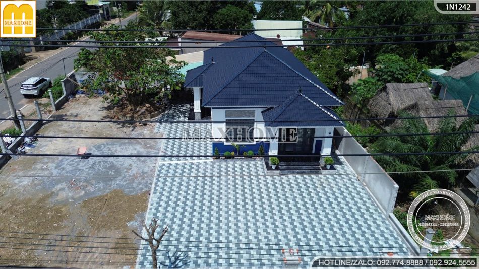 Nhìn từ góc cao, từng đường viền và nếp mái được xử lý tỉ mỉ, tinh xảo, tạo nên vẻ bề thế cho tổng thể công trình, đồng thời khẳng định trình độ chuyên môn vững vàng và gu thẩm mỹ tinh tế của đội ngũ Maxhome.