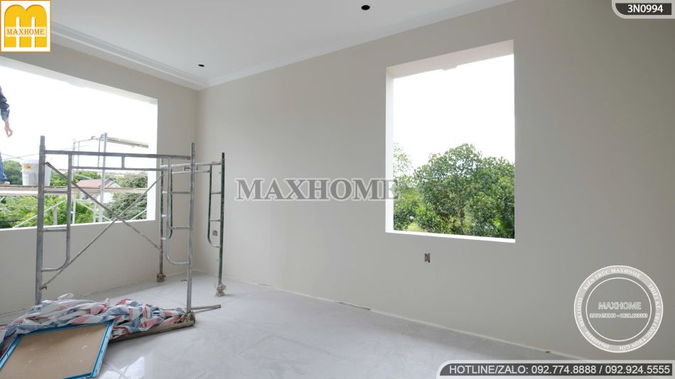 Ngôi nhà 2 tầng mái Nhật tân cổ điển sau khi nghiệm thu phần thô đã khẳng định chất lượng vượt trội với hệ tường, cột và dầm thi công chuẩn chỉ, bền vững, đáp ứng đầy đủ yêu cầu kỹ thuật. Hiện nay, công trình đang bước sang giai đoạn hoàn thiện, các hạng mục sơn bả và ốp lát được triển khai kỹ lưỡng; từng lớp sơn, từng chi tiết trang trí đều được xử lý tinh tế nhằm tôn lên vẻ đẹp kiến trúc sang trọng, chuẩn mực của ngôi nhà.