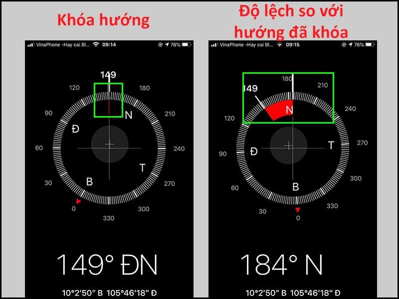 Cách hiệu chỉnh: Nếu la bàn đo được 135° và độ từ thiên là +1°20′, hướng nhà chuẩn sẽ là: 135° + 1°20′ = 136°20′.
